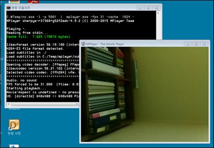 위에서는 먼저 "nc" 명령에 의해 <Netcat> 프로그램이 작동하고, port "5001"로 들어오는 동영상 stream을 받아서 pipe를 통하여 <Mplayer> 프로그램으로 넘겨준다. 그러면 <Mplayer> 프로그램은 수신한 동영상 stream을 이용하여 동영상을 상영하게 되는 것이다.