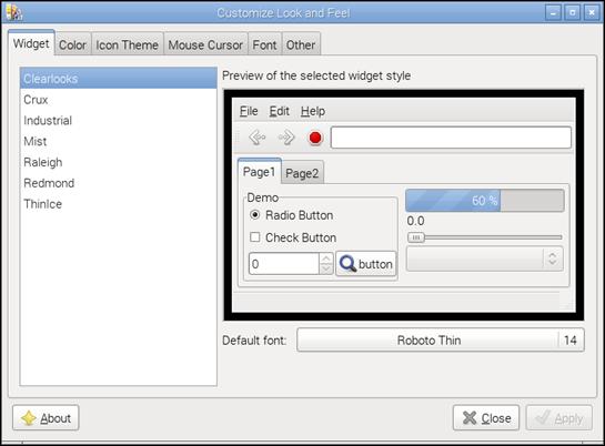 If you run Application Menu Menu → Preferences → Theme and Appearance Settings, the screen as follows for settings appears.