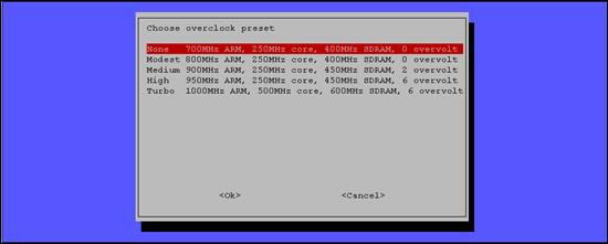 Figure 9‑11 Setting overclock in "raspi-config" command